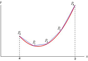 \[\begin{align*}{r_1} = & f\left( {{x_i}} \right)\\ {r_2} = & f\left( {{x_{i - 1}}} \right)\\ l = & \left| {{P_{i - 1}}\,\,{P_i}} \right|\,\,\,\,\,\,\left( {{\mbox{length of the line segment connecting }}{P_i}{\mbox{ and }}{P_{i - 1}}} \right)\end{align*}\]and we know from the previous section that,