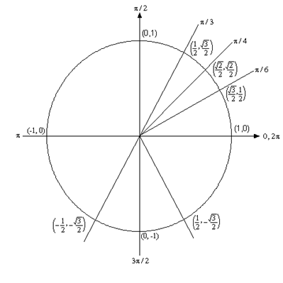 \[\begin{align*}\frac{\pi }{6} + 2\pi n,& \;\;n = 0,\, \pm 1,\, \pm 2,\, \pm 3,\, \ldots \\ \frac{{11\pi }}{6} + 2\pi n,& \;\;n = 0,\, \pm 1,\, \pm 2,\, \pm 3,\, \ldots \end{align*}\]As a final thought, notice that we can get \( - \frac{\pi }{6}\) by using \(n = - 1\) in the second solution.