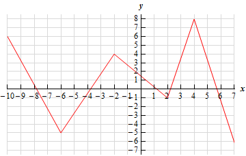 - Graphed on the interval \(\left[ { - 4,10} \right]\).