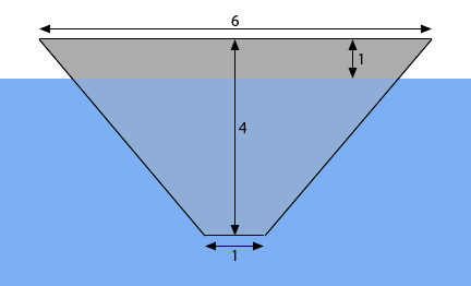 Find the hydrostatic force on the following plates submerged in water as shown in each image. In each case consider the top of the blue “box” to be the surface of the water in which the plate is submerged. Note as well that the dimensions in many of the images will not be perfectly to scale in order to better fit the plate in the image. The lengths given in each image are in meters.