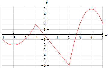 Relative Maximums : \(\left( { - 1,2} \right)\) and \(\left( {4,5} \right)\)