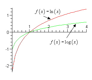 \[\begin{align*} & \ln \left( x \right) \to \infty {\mbox{ as }}x \to \infty & \hspace{0.5in} & {\rm{and}} & \hspace{0.5in} & \ln \left( x \right) \to - \infty {\mbox{ as }}x \to 0\,\,\left( {x > 0} \right)\\ & \log \left( x \right) \to \infty {\mbox{ as }}x \to \infty & \hspace{0.5in} & {\rm{and}} & \hspace{0.5in} & \log \left( x \right) \to - \infty {\mbox{ as }}x \to 0\,\,\left( {x > 0} \right)\end{align*}\]