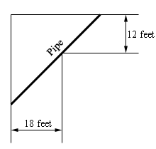 - A piece of pipe is being carried down a hallway that is 18 feet wide. At the end of the hallway there is a right-angled turn and the hallway narrows down to 12 feet wide. What is the longest pipe (always keeping it horizontal) that can be carried around the turn in the hallway?