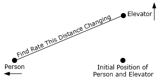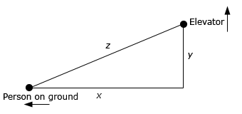 7. Two people are at an elevator. At the same time one person starts to walk away from the elevator at a rate of 2 ft/sec and the other person starts going up in the elevator at a rate of 7 ft/sec. What rate is the distance between the two people changing 15 seconds later?