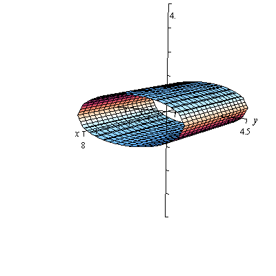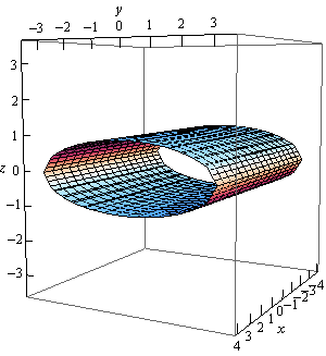This is a cylinder that is centered on the \(x\)-axis. The cross sections of the cylinder will be ellipses.