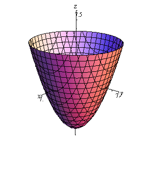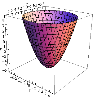 \[z = \frac{{{x^2}}}{4} + \frac{{{y^2}}}{4} - 6\] Show Solution
